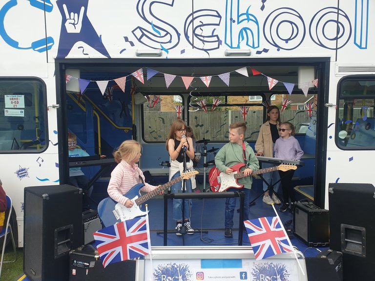 At the heart of the initiative is a converted double-decker bus, transformed into a mobile music facility. It functions as both a stage and creative space, visiting schools, fetes, festivals, and community events. Equipped with a PA system for indoor and outdoor sound, the bus allows young participants to perform live, explore instruments, and even dress up as their favourite rock stars. Guided by experienced music practitioners, children and young people learn to play popular songs on electric instruments and gain hands-on experience of live music performance.